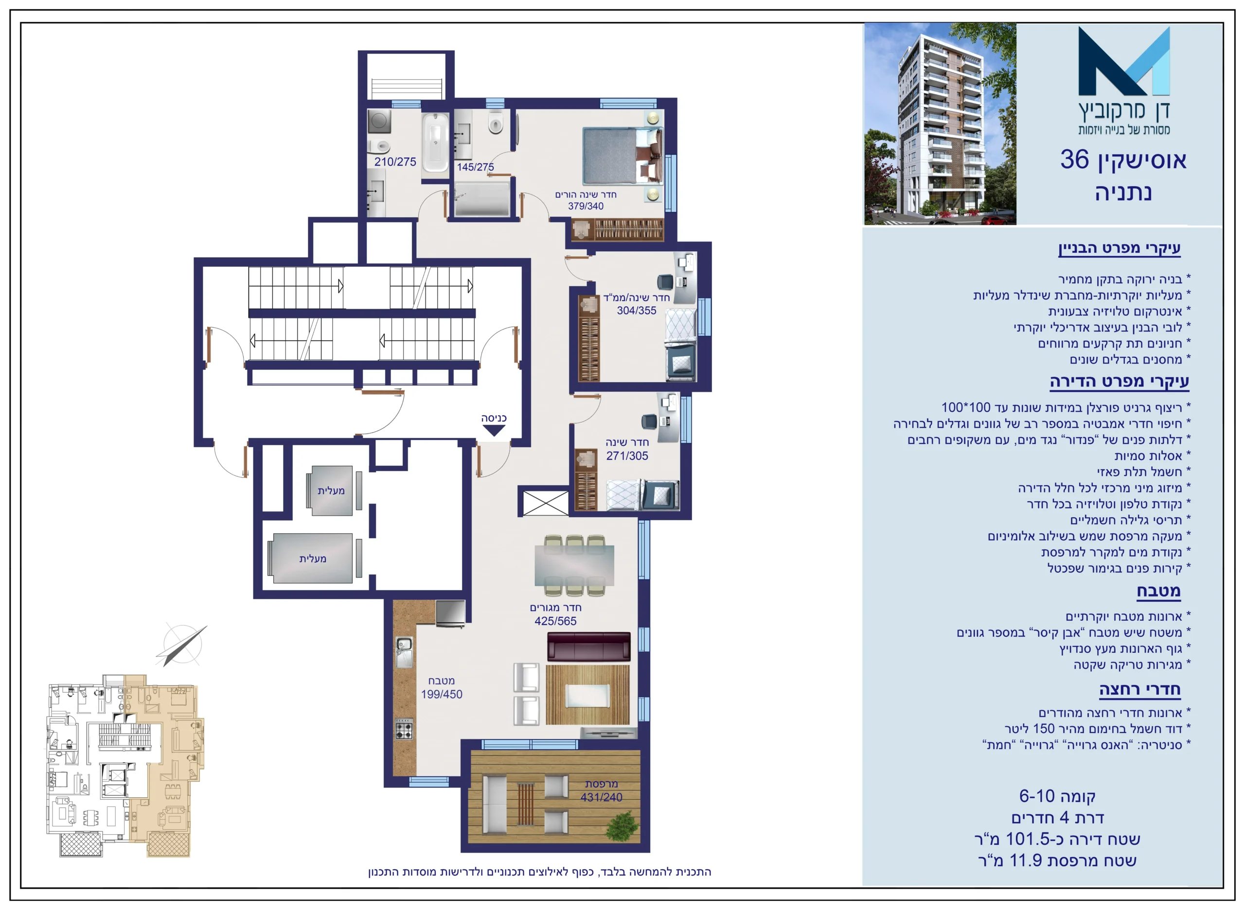 הפרויקט כולל דירות 4 ו־5 חדרים, עם מרפסות שמש מרווחות, לובי מעוצב בקפידה ושטחים ציבוריים מוקפדים, היוצרים חוויית מגורים אלגנטית לכל דייר. תכנון הפנים חכם וגמיש, עם מקסימום אור טבעי ופונקציונליות מושלמת, כך שכל דירה מותאמת לחיי היומיום המודרניים.